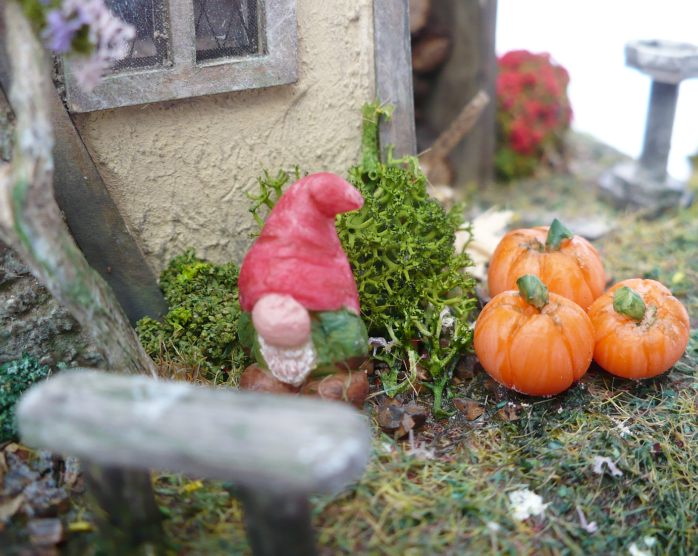 This one "Pumpkin Cottage" measures (including it's base), 12" by 9" by 9". I worried about the small scale but soon got my eye in and the build went well.