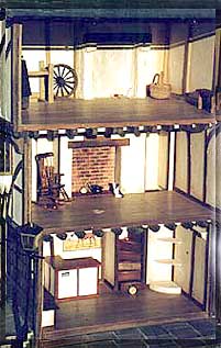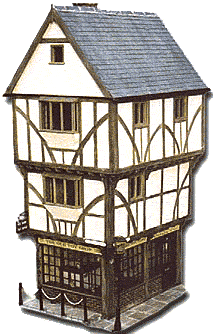 This three level timber building makes a great toy shop with loads of room upstairs for a workshop. It is a model of a building which still stands in the city of Exeter in the south west of the UK